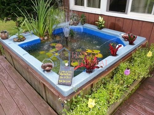Tạo khuôn bằng gỗ bên ngoài bồn tắm và bắt đầu thả sen, súng. Khu vườn sẽ đẹp bất ngờ với ý tưởng thú vị này của bạn.