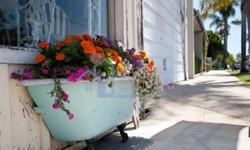Khi chưa tậu được mảnh vườn thì bạn có thể tận dụng 1/2 bồn tắm gắn liền với hiên nhà để trồng hoa trang trí tạo vẻ đẹp rực rỡ cho ngoại thất của gia đình đón mùa hè sang.