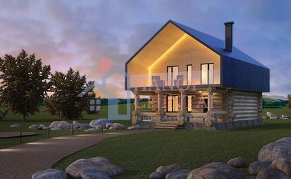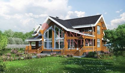 Những ngôi nhà gỗ kiểu này thường có mặt tiền được tạo nên từ những dầm gỗ ngang cùng với những cột đỡ phía trước để làm nổi bật vẻ tự nhiên, mộc mạc. Ưu điểm của loại nhà gỗ này là cách nhiệt, cách âm tốt; đồng thời khá bền, chắc trong mọi điều kiện thời tiết, nhất là sau khi đã được sơn phủ bóng.