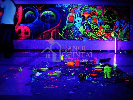 Một ứng dụng quan trọng khác của vật liệu phát quang thu hút người tiêu dùng là làm sơn trang trí. Hiện nay, các cửa hàng giải trí, nhà hàng, quán bar,… được mở ra nhiều để đáp ứng nhu cầu vui chơi, giải trí ngày càng tăng của người dân. Do đó, việc thiết kế không gian giải trí sao cho có sức thu hút, sống động và mang tính thẩm mỹ cao là quan tâm hàng đầu của những nhà kinh doanh. Khi đó, sơn phát quang sẽ là lựa chọn ưu tiên để quét lên tường, trần nhà tạo nên những hình ảnh, bức tranh sống động phát sáng ban đêm.