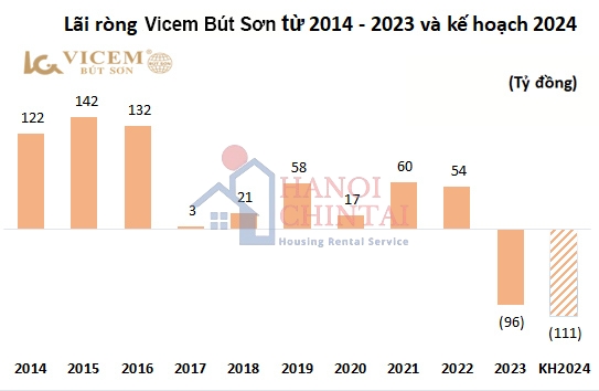Do sản lượng tiêu thụ xi măng trong năm 2023 giảm gần 391,777 tấn, tương đương hơn 12%, so với năm 2022, khiến doanh thu giảm mạnh và chuyển từ lãi sang lỗ. Năm 2023, Xi măng Bút Sơn ghi nhận doanh thu thuần hơn 2,573 tỷ đồng, giảm 18% so với năm trước; lỗ ròng hơn 96 tỷ đồng (năm 2022 lãi gần 54 tỷ đồng). Đây cũng là kết quả kinh doanh tệ nhất của Vicem Bút Sơn từ năm 2014.