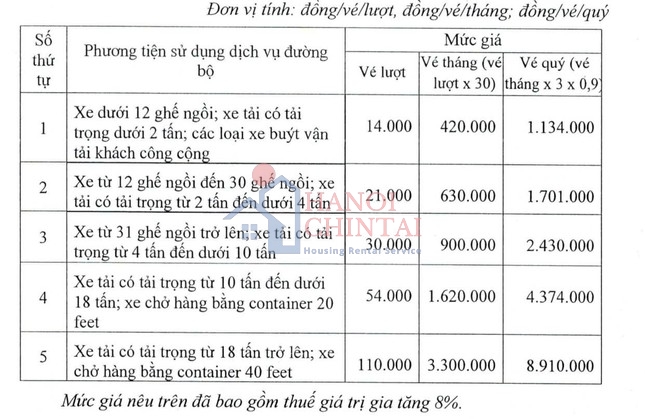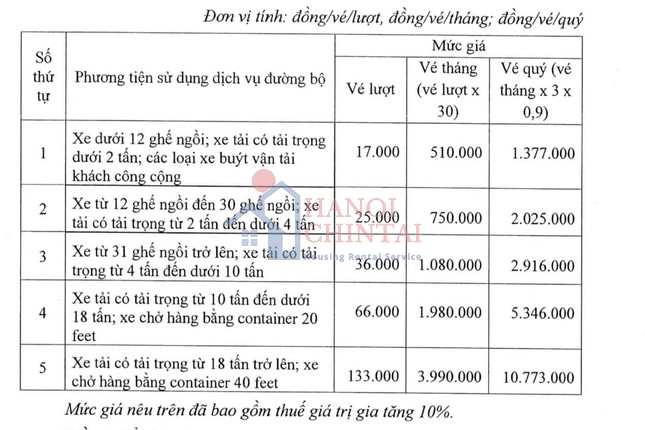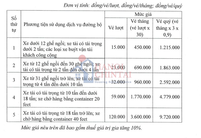 Có 3 loại vé gồm: Vé lượt, vé tháng và vé quý. Mức thu phí được thu theo 3 giai đoạn, gồm: giai đoạn 1 từ ngày 17/9-31/12/2024; giai đoạn 2 từ ngày 1/1/2025 đến ngày 16/9/2025 và giai đoạn 3 từ ngày 17/9/2025 trở đi.