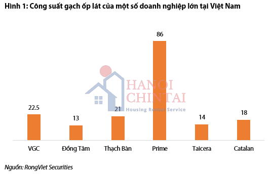 Một số thương hiệu nổi bật trong nước cũng đang cạnh tranh gay gắt với nhau, như Viglacera, Đồng Tâm, Bạch Mã, Thạch Bàn. Công suất gạch ốp lát hiện tại của Viglacera (HOSE: VGC) đạt khoảng 13,5 triệu m2 đối với gạch ceramic (3% thị phần) và 9 triệu m2 đối với gạch granite (11,2% thị phần). Mặc dù là một thương hiệu lâu năm, doanh nghiệp đang phải đối mặt cạnh tranh khốc liệt trong 6 tháng đầu năm 2018 khi biên nhuận gộp mảng gạch ốp lát giảm xuống còn 21% so với mức trung bình 24% những năm trước. Công ty CP CMC (HOSE: CVT) cũng báo cáo mức biên lãi gộp giảm xuống 22% so với mức 26% cùng kỳ năm 2017, mặc dù doanh nghiệp vừa tăng 20% công suất lên 18 triệu m2 vào đầu năm 2018 và ghi nhận doanh thu tăng 18% trong 6 tháng đầu năm 2018.