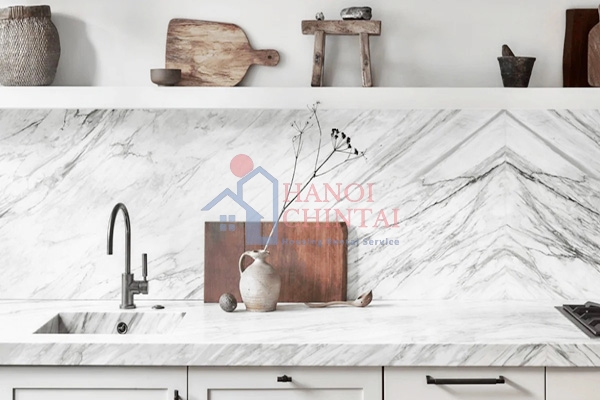 1. Vật liệu ốp tường bếp đá marble (đá cẩm thạch)
