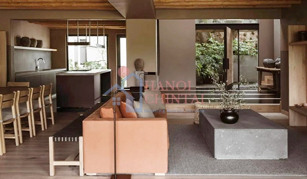 Không gian trung tâm có nội thất tự nhiên, với chỗ ngồi bệt cửa sổ cỡ lớn nhìn ra cánh đồng lúa lân cận.