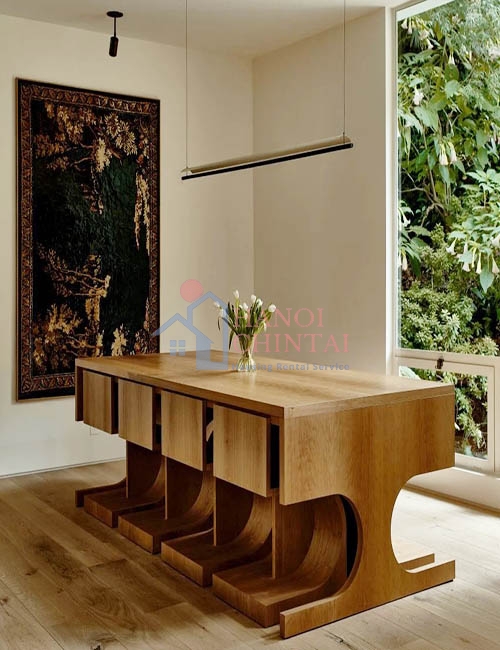 Việc sử dụng tông màu trung tính, êm dịu đã được sử dụng xuyên suốt cho dự án cải tạo ngôi nhà này. Khoảng sân tươi tốt ở hai đầu ngôi nhà đóng vai trò làm nền cho nội thất bên trong và có thể nhìn thấy qua cửa sổ kính lớn và cửa ra vào kiểu Pháp.