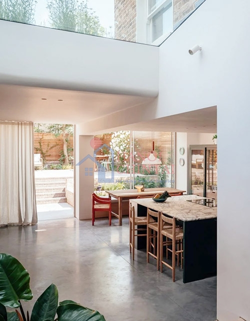 Ngôi nhà đã bổ sung thêm một giếng trời rộng 4 m cho phần mở rộng của ngôi nhà kiểu Victoria ở phía nam London. Phần mở rộng mang đến tầm nhìn ra mái nhà đồng cỏ hoa dại cùng với tầm nhìn ra sân sau.