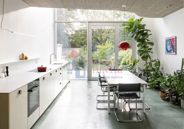 Studio Memo Architectuur của Bỉ đã cải tạo ngôi nhà đổ nát ở Mortsel này để làm nơi ở cho một gia đình. Nội thất tươi sáng, rợp bóng cây của ngôi nhà được chiếu sáng bởi phần cửa ra vào bằng kính lớn, mang lại phông nền đẹp như tranh vẽ cho nhà bếp không gian mở và ban công ở tầng trên.