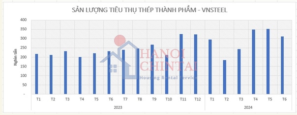 Theo số liệu của Tổng công ty Thép Việt Nam (VNSTEEL), tổng tiêu thụ thép thành phẩm 6 tháng đầu năm 2024 đạt 1.737.000 tấn, tăng 32% so với cùng kỳ năm trước, trong đó thép cán dài tăng 13%, đặc biệt, thép cán nguội và tôn mạ tăng trưởng trên 90%.
