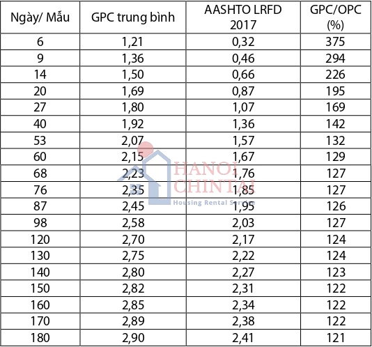 Với bê tông GPC được chế tạo theo cấp phối của Trường Đại học Xây dựng Hà Nội, có kết luận sau: