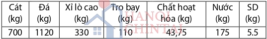 Dựa vào các nghiên cứu về cấp phối của GPC tại Trường Đại học Xây dựng Hà Nội, chúng tôi đã lựa chọn cấp phối đúc mẫu thí nghiệm chế tạo bê tông GPC M500 (B40) với thành phần cấp phối để trộn 1000 lít như Bảng 1: