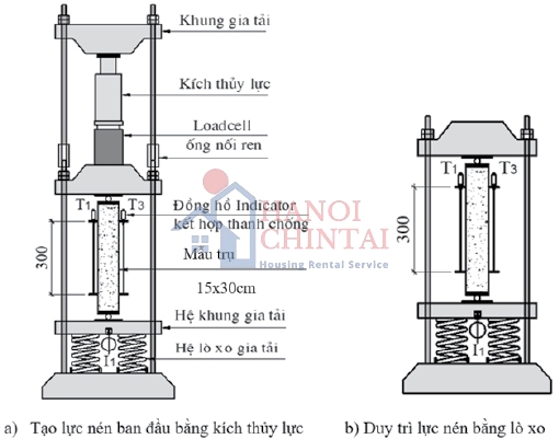 Hình 3.Sơ đồ thiết bị thí nghiệm biến dạng do từ biến.