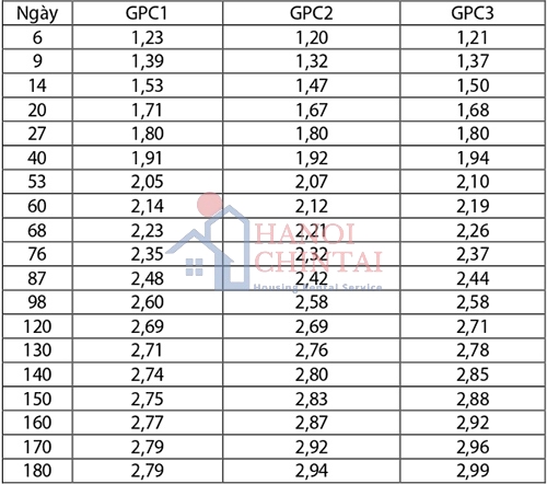 Bảng 2. Kết quả tính toán hệ số từ biến của mẫu GPC