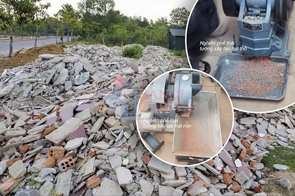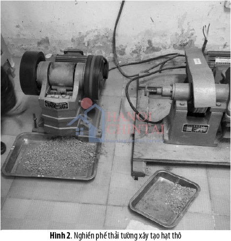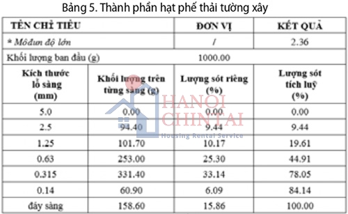 Cốt liệu phế thải tường xây sử dụng trong nghiên cứu này từ phá dỡ tường xây của nhà cấp 4 tường dày 100. Phế thải tường xây được nghiền và sàng qua cỡ từ 5 mm để loại bỏ thành phần hạt to. Sau đó tiến hành xác định thành phần hạt.