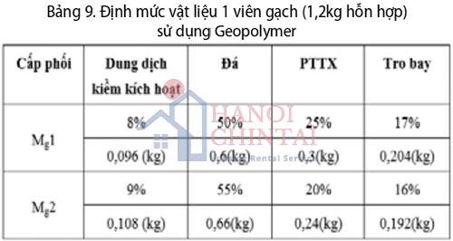 Mặt khác, tác giả sử dụng Geopolyner để thay thế chất kết dính xi măng, điều chỉnh thành phần cấp phối cùng với PTTX để tạo ra gạch không nung.