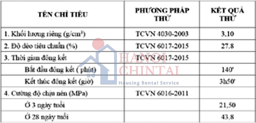 Bảng 3. Chỉ tiêu cơ lý của xi măng