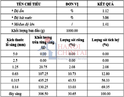 Bảng 4. Chỉ tiêu cơ lý của cát
