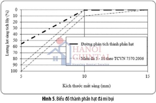 * Cấp phối 3: Mạt đá (<8mm) 47%, xi măng 8%, cát 15%, xỉ than 30%: Cấp phối này chủ yếu tận dụng nguồn xỉ than rẻ và sẵn có tại địa phương, bảo vệ môi trường và tiết kiệm chi phí sản xuất.
