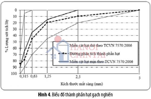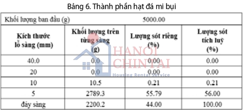 Đá mạt là thành phần cốt liệu chính để sản xuất gạch không nung nên tác giả sử dụng đá Antraco. Trong nghiên cứu nhóm tác giả sử dụng đá mi bụi có thành phần hạt như sau: