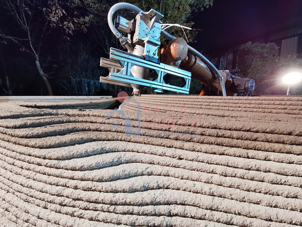 Tường ngôi nhà được in 3D theo nguyên tắc xếp chồng từng lớp vữa với độ dày mỗi lớp 2cm, độ dày vách tường 20cm