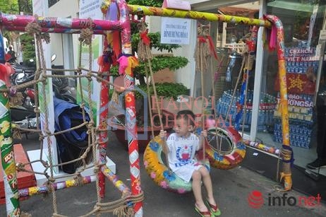 Ngôi nhà xanh, góc học xanh...các em học sinh kêu gọi mọi người hãy cùng chung tay bảo vệ môi trường, tăng cường sử dụng các phế liệu bỏ đi,
