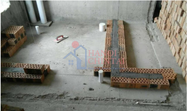 Tường được xây bằng gạch lỗ để giảm sức nặng cho công trình.