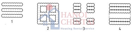 Hình - Bố trí trụ trộn khô: 1- Dải; 2 - Nhóm ( 3 - Lưới tam giác, 4 - Lưới vuông )
