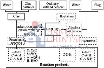 Mô tả phản ứng hóa học giữa đất, xi măng, phụ gia và nước