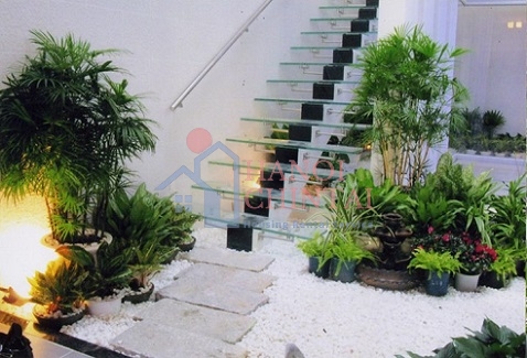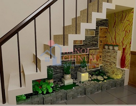 Đối với những ngôi nhà bê tông cao tầng, bạn có thể đưa thiên nhiên cây cỏ vào nhà mình bằng cách thiết kế những vườn tiểu cảnh dưới chân cầu thang lạ mắt, hút ánh nhìn.