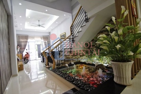 Biệt nhà sang chảnh hơn với tiểu cảnh bể cá koi dưới chân cầu thang như thế này. Nguồn ảnh: Azgarden, vuonhoa.